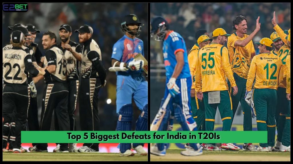 India has faced some shocking losses over the years, and the Biggest Defeats for India in T20Is show that even cricket powerhouses can struggle under pressure. From high-scoring encounters in South Africa to tense matches against New Zealand, these games exposed weaknesses in batting, bowling, and fielding. The Biggest Defeats for India in T20Is are a reminder of the unpredictability of the shortest format, where a few overs can change the outcome completely. In this list, we rank these humiliating losses from 5th to 1st, providing detailed insights, stats, and standout performances that defined each crushing defeat.